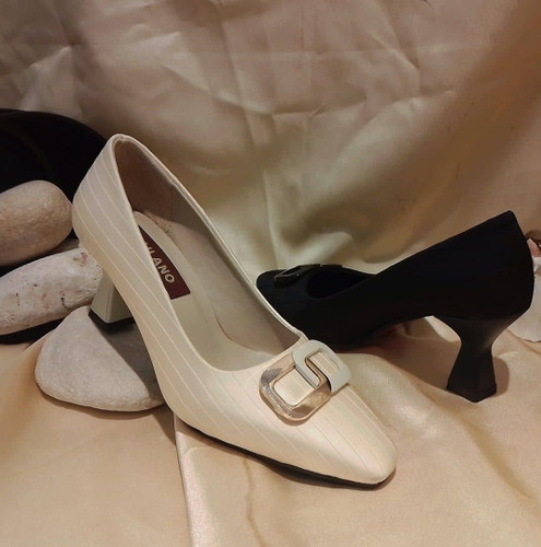 کفش مجلسی زنانه پاشنه 3 سانت (مدل Tv) جنس ساتن خطی