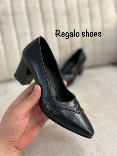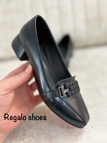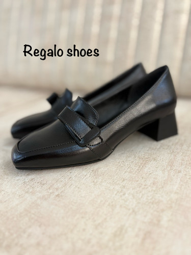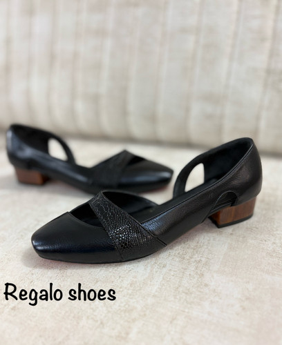 ‌‌‌‌‌‌‌کفش مجلسی زنانه (پاشنه 2 سانت ) پاشنه طرح چوب مدل وصله دار مشکی