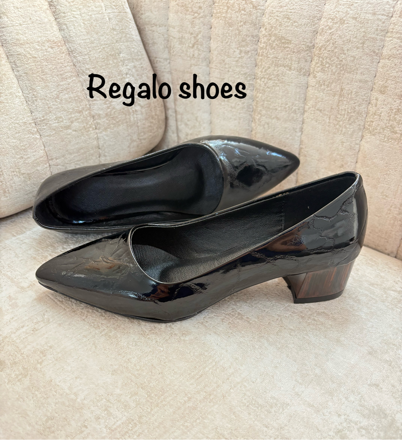 کفش مجلسی زنانه ٫ورنی پوست ماری ٫ پاشنه 3 سانت طرح چوب