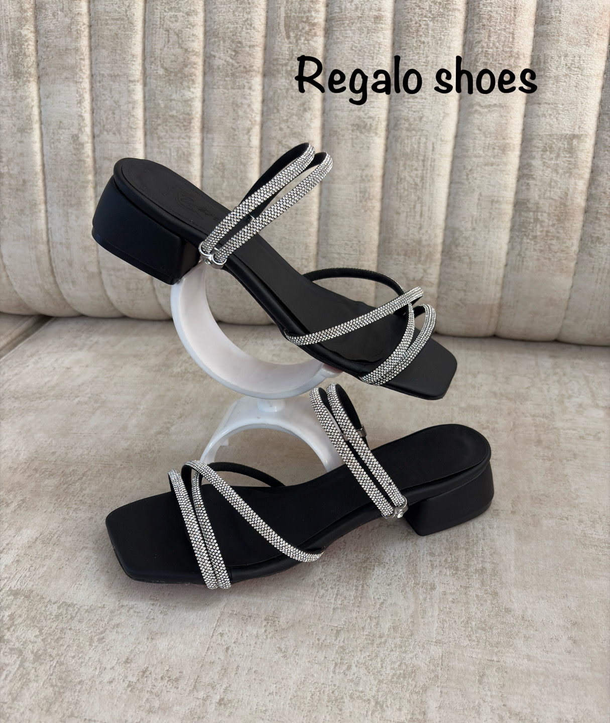 صندل 2 حالته مجلسی زنانه /: پاشنه 3سانت /: نگین خارجی // زیره دافوس قرمز // دارای بند تنظیم دور مچ /: مناسب برای مجلس و مهمانی